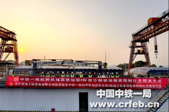 2月2日,隨著最后一孔長32米、重達697噸的箱梁完成澆筑,標志著中鐵一局南沙梁場順利完成杭州機場高鐵3標全部箱梁預制任務,成為全線首家完成箱梁預制任務的單位。