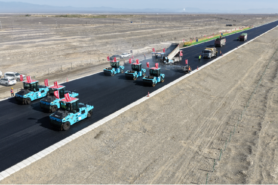 2025年9月,項目智能無人攤壓機群技術應用的創新實踐亮相“連霍高速新疆星哈吐段干旱荒漠區智慧低碳改擴建科技示范工程”技術交流暨觀摩會,并得到交通運輸部相關司局、哈密市人民政府、全國29個省(區、市)交通運輸主管部門、科研院所及重點交通建設企業代表和專家的一致肯定。