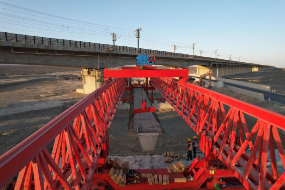 下穿蘭新高鐵梁板架設