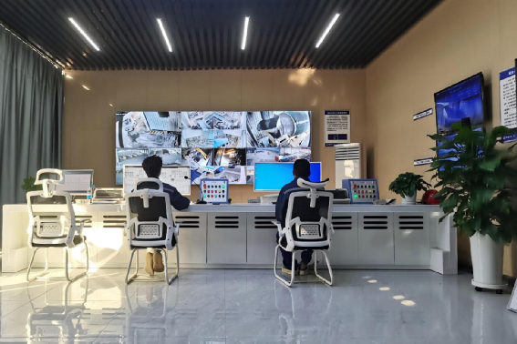 走進項目智慧拌和站,操作員在智慧拌和中心通過集成管控系統下達生產指令,大屏幕顯示從原材料進場、投料攪拌到出料的全流程數據。砂、石等原材料進場經無人值守地磅系統自動稱重并上傳數據,智慧拌和系統全自動完成拌和流程,出料數據一覽無余。