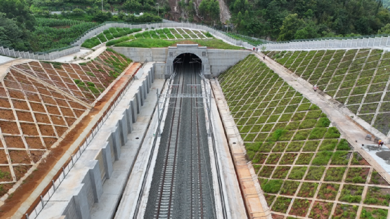 工程建設中,項目團隊嚴格落實生態環境保護制度,控制施工范圍,優化取、棄土場和施工便道等臨時設施,采用道路硬化、植草植樹等防護措施,最大限度降低對生態環境的影響,修筑與山川同美的綠色生態鐵路。