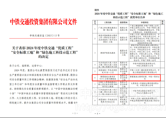 近日,公司?黎霍高速項(xiàng)目TJ5-1分部問腰隧道榮獲2024年度中鐵交通“安全標(biāo)準(zhǔn)工地”稱號(hào)。這一榮譽(yù)不僅是對(duì)項(xiàng)目安全管理工作的高度認(rèn)可,更是對(duì)全體建設(shè)者不懈努力的最佳褒獎(jiǎng)。