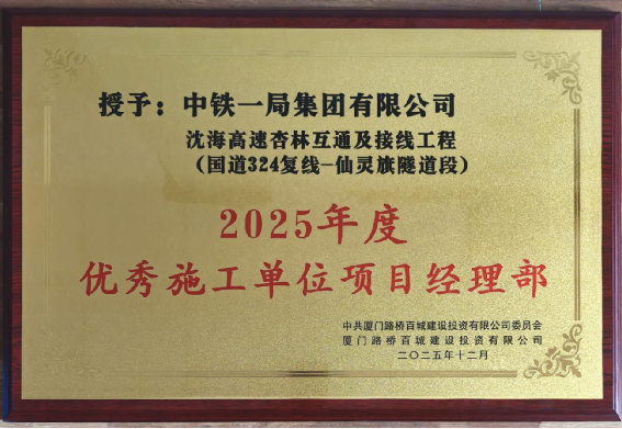 福建廈門訊:2月5日,在廈門路橋百城建設投資有限公司召開的2025年度代建項目總結表彰會上傳來喜訊,中鐵一局廈門沈海高速項目部榮獲2025年度“優秀施工單位項目經理部”。