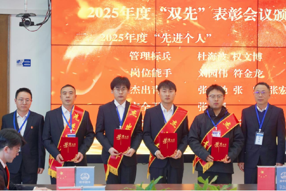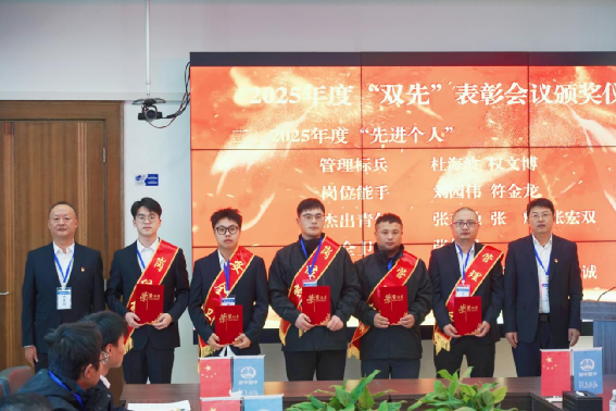 在“雙先”表彰會上,項目負責人宣讀項目部2025年度“雙先”表彰文件,對在年度生產攻堅突破、團隊配合協作、內控管理提升、后勤服務保障等各項工作中表現突出的6個“先進集體”和15名“先進個人”予以表彰并頒發獎牌及榮譽證書。表彰環節后,先進個人與先進集體代表先后登臺交流發言。會議強調,先進代表是項目建設的中堅力量與精神旗幟,全體參建員工要以先進為榜樣,主動汲取奮進力量,傳承務實擔當作風,在項目收官沖刺的關鍵階段凝心聚力、勇毅攻堅,共同推動項目建設再攀新高。