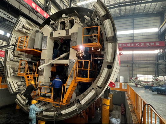 據了解,此次中鐵裝備1579盾構機(原中鐵裝備1332盾構機)縮徑改造主要有盾體新制+設備維修+聯機調試三部分,由原管片外徑8.8米縮徑至8.5米,刀盤開挖直徑φ9130米縮徑至φ8830米。于2025年12月5日全面啟動整機組裝調試工作,1月驗收出廠后投入中鐵一局嘉興至楓南市域鐵路土建施工SG2標盾構施工使用。
