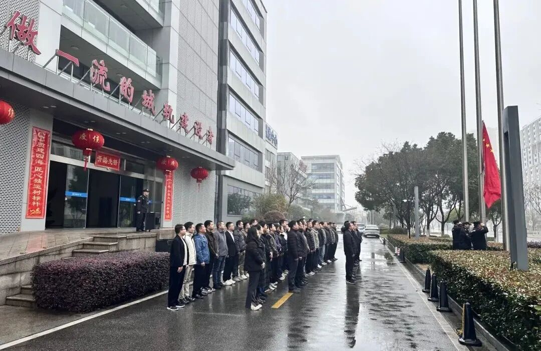2月27日,中鐵一局城軌公司在無錫本部舉行新春升國旗儀式。公司在家領導及本部全體員工參加升旗儀式。伴隨著莊嚴雄壯的國歌聲,鮮艷的五星紅旗冉冉升起,迎風飄揚。全體人員整齊列隊,肅立致敬,以昂揚的精神面貌正式拉開了新一年工作的序幕。