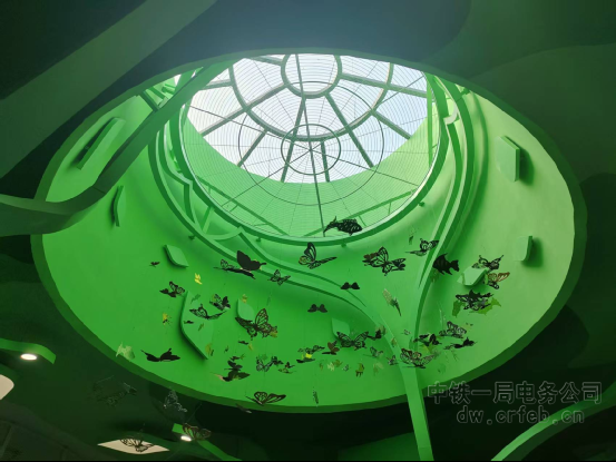施工過程中,項目團隊廣泛應用BIM(建筑信息模型)技術,對全專業管線進行三維模擬和“預裝配”,生成最優排布方案,實現實體施工零碰撞、零誤差。針對“空中繡花”般的異型鋁板吊頂,團隊下足功夫。這款吊頂由眾多契合“樹葉舒展”形態的異形板組成,為確保安裝精度,團隊創新采用“雙軌調校法”?,結合激光投線儀與專業測量工具反復調試。木工師傅們還總結出?“陰天調水平、晴天調弧度”的實操口訣,最終確保了吊頂光影連貫、造型完美呈現。?在異型裝飾框架的焊接環節,焊工們在僅容一人的狹窄空腔內持續作業,工裝被汗水浸透變色,生動詮釋了建設者們的奉獻與堅韌。