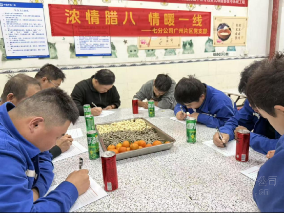 “黨員同志經常來工區問我們有什么困難,今天又喝上他們親手熬的粥,心里特別踏實!”一位工友由衷感慨。活動特別設置“家書寄情”環節,許多員工在黨員的陪伴下提筆落墨,將對家人的思念與祝福凝于紙上,紙短情長,滿是感動。