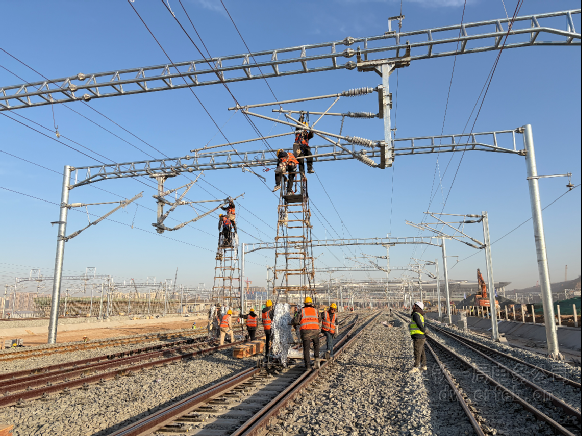 清晨薄霧未散,西安東站高速場(chǎng)作業(yè)區(qū)內(nèi),數(shù)十名身著橙色工裝的接觸網(wǎng)作業(yè)人員已集結(jié)到位。自2025年12月“百日會(huì)戰(zhàn)”啟動(dòng)以來,項(xiàng)目全面掀起大干熱潮,現(xiàn)場(chǎng)作業(yè)全面展開,關(guān)鍵工序高效推進(jìn)。