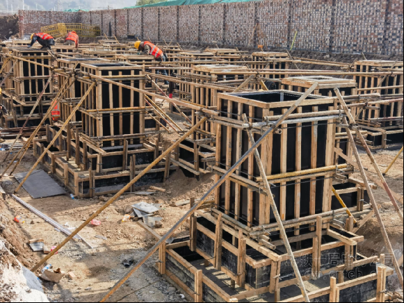 變電專業(yè)工程部長(zhǎng)袁玉軒介紹,在基礎(chǔ)施工中,項(xiàng)目打破傳統(tǒng)分塊澆筑模式,對(duì)設(shè)備基礎(chǔ)群采用“整體支模、整體澆筑”工法,有效控制多組基礎(chǔ)相對(duì)位置精度,避免累計(jì)誤差,將多輪次支模、澆筑、養(yǎng)護(hù)合并為一次成型,施工周期縮短約40%。