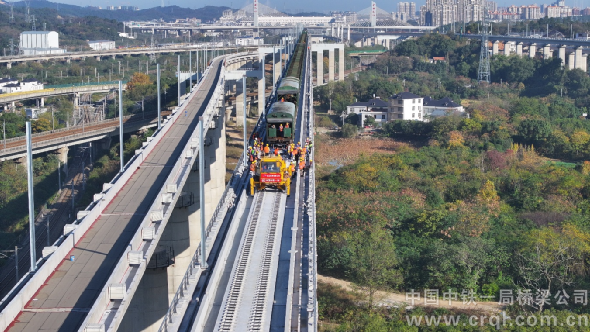 12月19日,在位于江西九江的中鐵一局昌九高鐵施工現場,隨著鋪軌車將第一對500米長鋼軌平穩鋪設到位,昌九高鐵正式進入全線鋪軌階段。