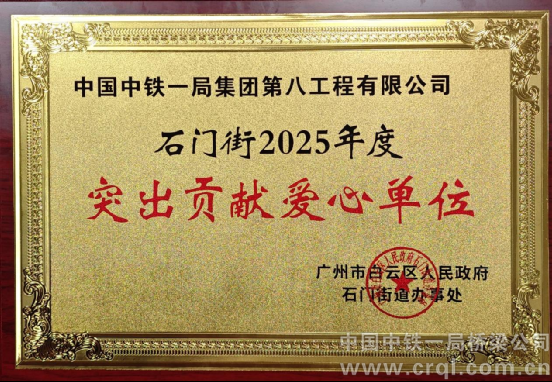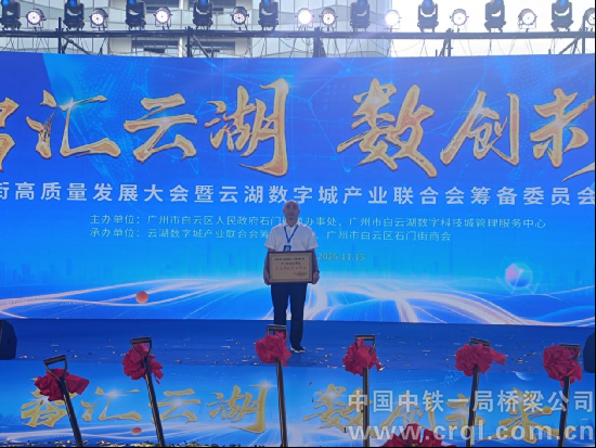 11月15日上午,云湖數字城產業聯合會籌備委員會啟動儀式在廣州市白云區石門街舉行。儀式上,中鐵一局八公司廣州片區項目工程指揮部被授予“突出貢獻愛心單位”獎牌,以表彰其在推動區域建設與發展中的積極貢獻。