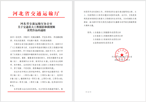 近日,河北省交通運(yùn)輸廳組織開(kāi)展關(guān)于交通重大工程攝影、微視頻和新聞獲獎(jiǎng)作品名單于12月29日正式揭曉,經(jīng)過(guò)專家評(píng)審會(huì)認(rèn)真評(píng)選和研究,中鐵一局六公司熊楠新聞作品《標(biāo)準(zhǔn)化助推高質(zhì)量建設(shè) 小改小革助力降本增效》,憑借鮮明的主題、鮮活的視角和生動(dòng)的呈現(xiàn),榮獲大賽三等獎(jiǎng)。