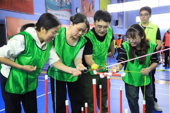 本次趣味運(yùn)動會精心設(shè)置了6個兼具趣味性與協(xié)作性的項(xiàng)目,每個環(huán)節(jié)都暗藏“團(tuán)隊密碼”?!熬奕四_步”考驗(yàn)隊員間的節(jié)奏同步,大家綁著綁帶齊聲喊號,一步一步向著終點(diǎn)邁進(jìn),展現(xiàn)出高度的默契;“節(jié)節(jié)高升”中,職工們小心翼翼地搭建道具,在一次次調(diào)整與配合中,體會“積小勝為大勝”的道理;“孤注一擲”環(huán)節(jié),參賽選手瞄準(zhǔn)目標(biāo)全力投擲,現(xiàn)場歡呼聲與喝彩聲此起彼伏;“追求卓越”項(xiàng)目里,大家向著同一目標(biāo)奮力沖刺,用速度與激情詮釋奮斗精神;“精誠攜手”要求隊員手拉手完成挑戰(zhàn),讓“團(tuán)結(jié)就是力量”的信念深入人心;“同舟共濟(jì)”則模擬團(tuán)隊面對困境的場景,眾人齊心協(xié)作,共同“渡過難關(guān)”。