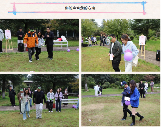 午后時光,趣味十足的“心動大闖關(guān)”正式開啟。“投壺許愿”、“勝利歸巢”、“你比劃我猜”、“你的聲音我的方向”四項挑戰(zhàn)依次展開。青年們兩兩結(jié)對,或屏息瞄準(zhǔn)投壺、或持扇趕球歸巢,或用動作傳遞詞語、或憑聲音指引方向,配合間的默契與信任不斷加深,每完成一關(guān)獲得的印章,都成了彼此交流的新話題。